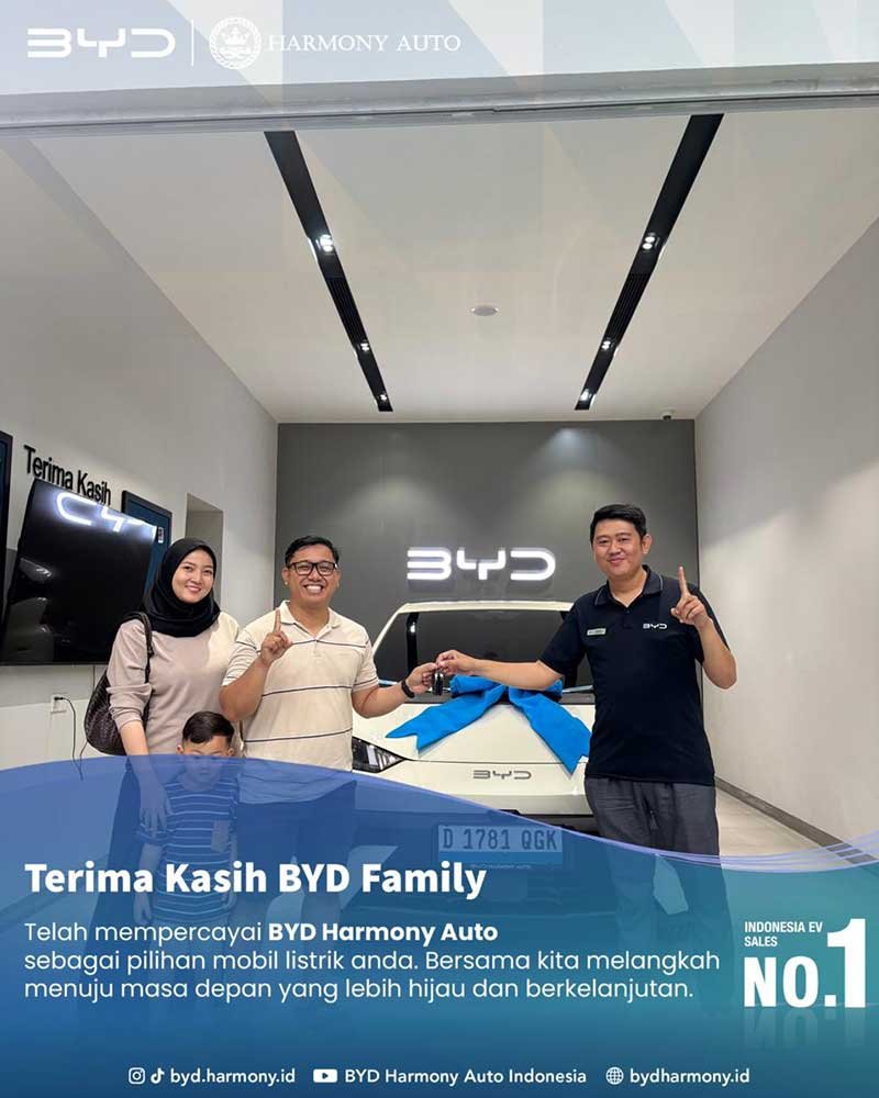 BYD Purwakarta merupakan dealer resmi mobil listrik di Jawa Barat yang menghadirkan pengalaman berkendara modern dengan teknologi canggih dan efisien. Kunjungi showroom BYD Purwakarta untuk merasakan langsung kenyamanan, performa halus, serta inovasi kendaraan listrik yang dirancang sesuai kebutuhan dan gaya hidup masa kini.