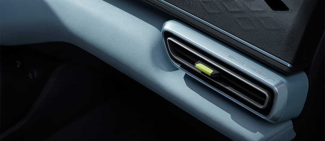 Interior BYD Atto 1 tampil standout dengan desain ventilasi AC bergaya cyberpunk yang unik, dipadukan garis tegas dan aksen kontras. Detail ini menghadirkan nuansa kabin yang lebih modern, ekspresif, dan futuristik.