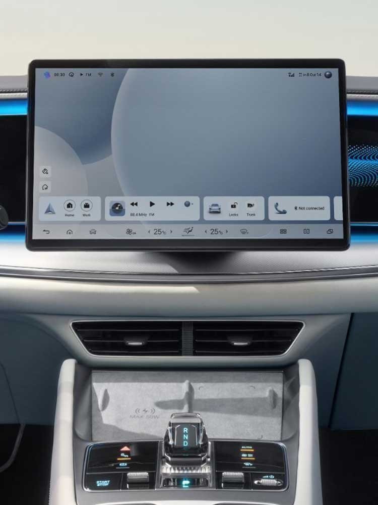 BYD Sealion 7 menampilkan cockpit pintar dengan chipset generasi terbaru untuk sistem cepat dan responsif, serta kontrol suara empat zona yang memudahkan setiap penumpang mengoperasikan fungsi kendaraan tanpa mengganggu pengemudi.