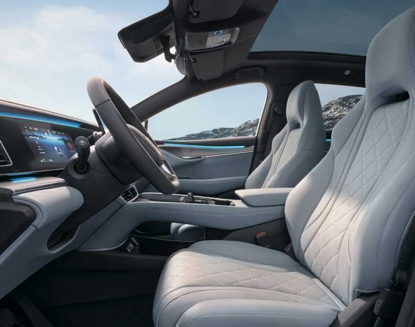 BYD Sealion 7 menawarkan kabin mewah dengan jok Nappa bertekstur quilted dari kulit vegan lembut, menghadirkan sentuhan elegan sekaligus kenyamanan ekstra bagi pengemudi dan penumpang.